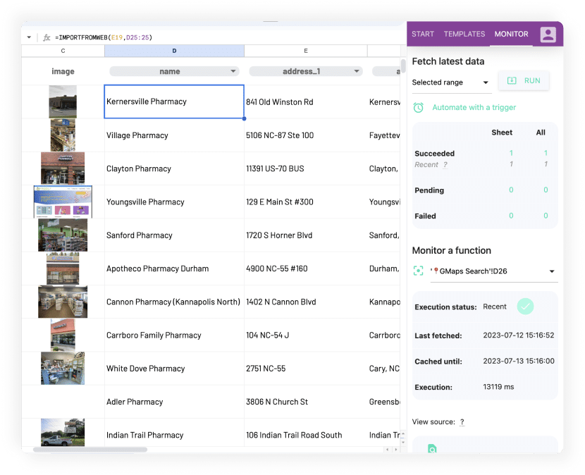 - Templates catalog, so you can enjoy all ImportFromWeb’s ready-to-use solutions designed for Amazon, Google Maps, Google Search, YouTube, Instagram, Yahoo Finance, …