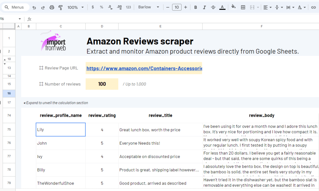 Introducing ImportFromWeb for Amazon Reviews Extraction