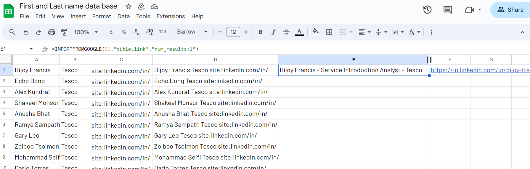 Let’s work on a typical concrete example: you have a list of employees from Tesco and you need to convert their names into Linkedin profile URLs.