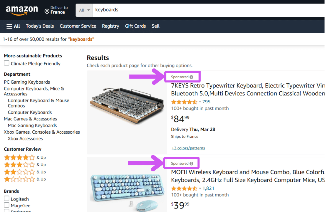 Let’s work on a typical concrete example: you sell keyboards on Amazon and you want to track the ASINs that appear as Sponsored on the Amazon Search results page.