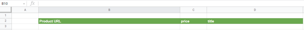 Once you have installed the ImportFromWeb add-on to your Google Sheets, we will open one new Google Sheet where we have activated the ImportFromWeb extension. We will create 3 columns as shown on the following image: