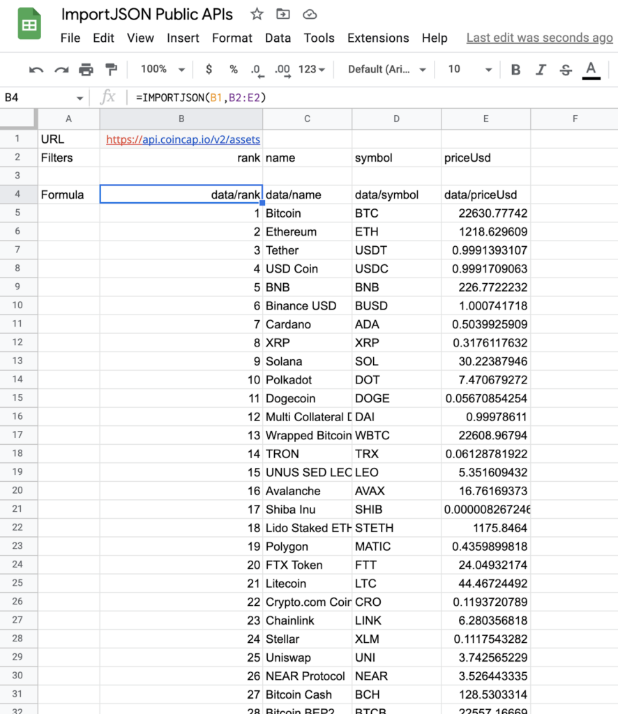 Let’s see how anyone can overcome both challenges, by using ImportJSON to get and interpret data from an API.