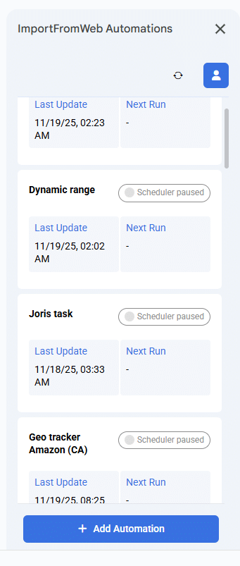 ImportFromWeb automations sidebar