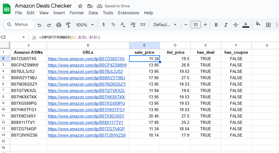 Whether you need to verify that your deals are correctly displayed, or analyze competitor offers, this solution provides a reliable way to monitor deals directly in Google Sheets.