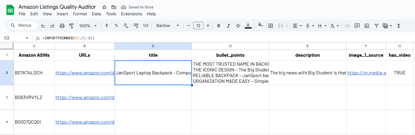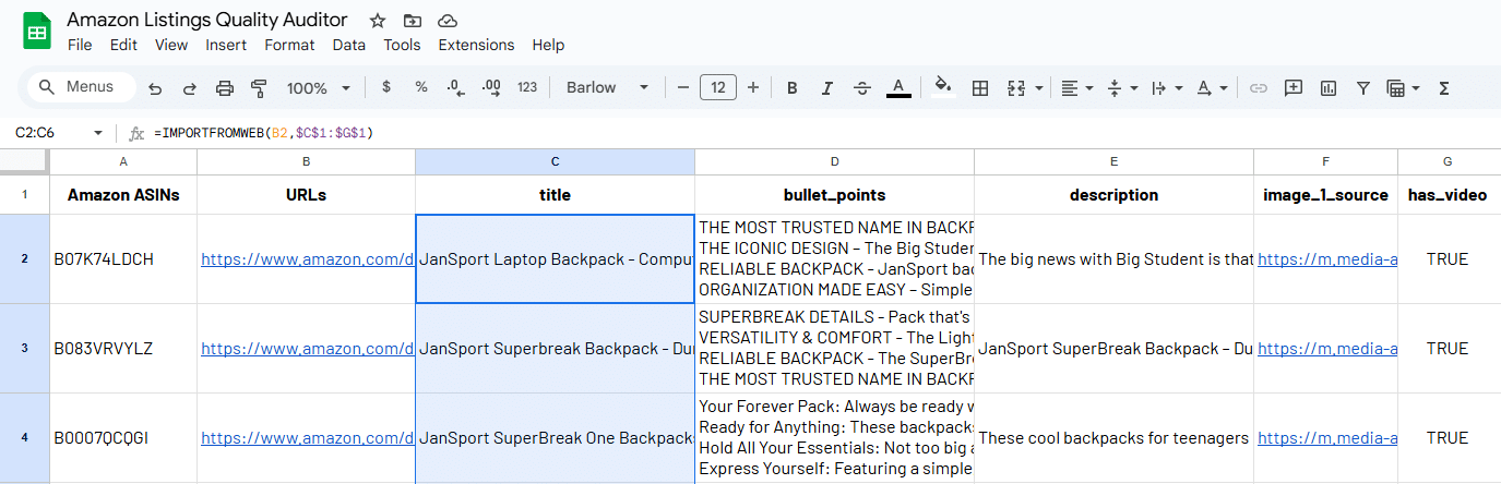 We’ve designed an easy-to-use template, so you can audit your Listings rigth away! Make sure you have installed and activated ImportFromWeb in your Google Sheets.
