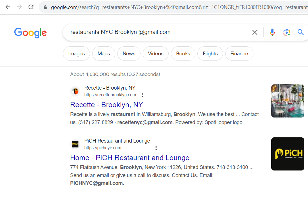 So when you look for emails, Google can be an effective solution. When you include a domain name in a search query – especially a generic one, such as @gmail.com or @hotmail.com – you increase the likelihood of encountering email addresses in the displayed search results.