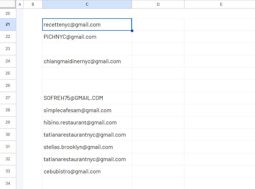 Using the ImportFromWeb add-on and the function it adds to Google Sheets, you collect emails with a simple Google query.